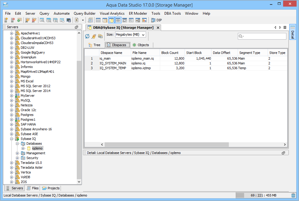 Aqua Data Studio Sybase IQ Administration Tools Include: